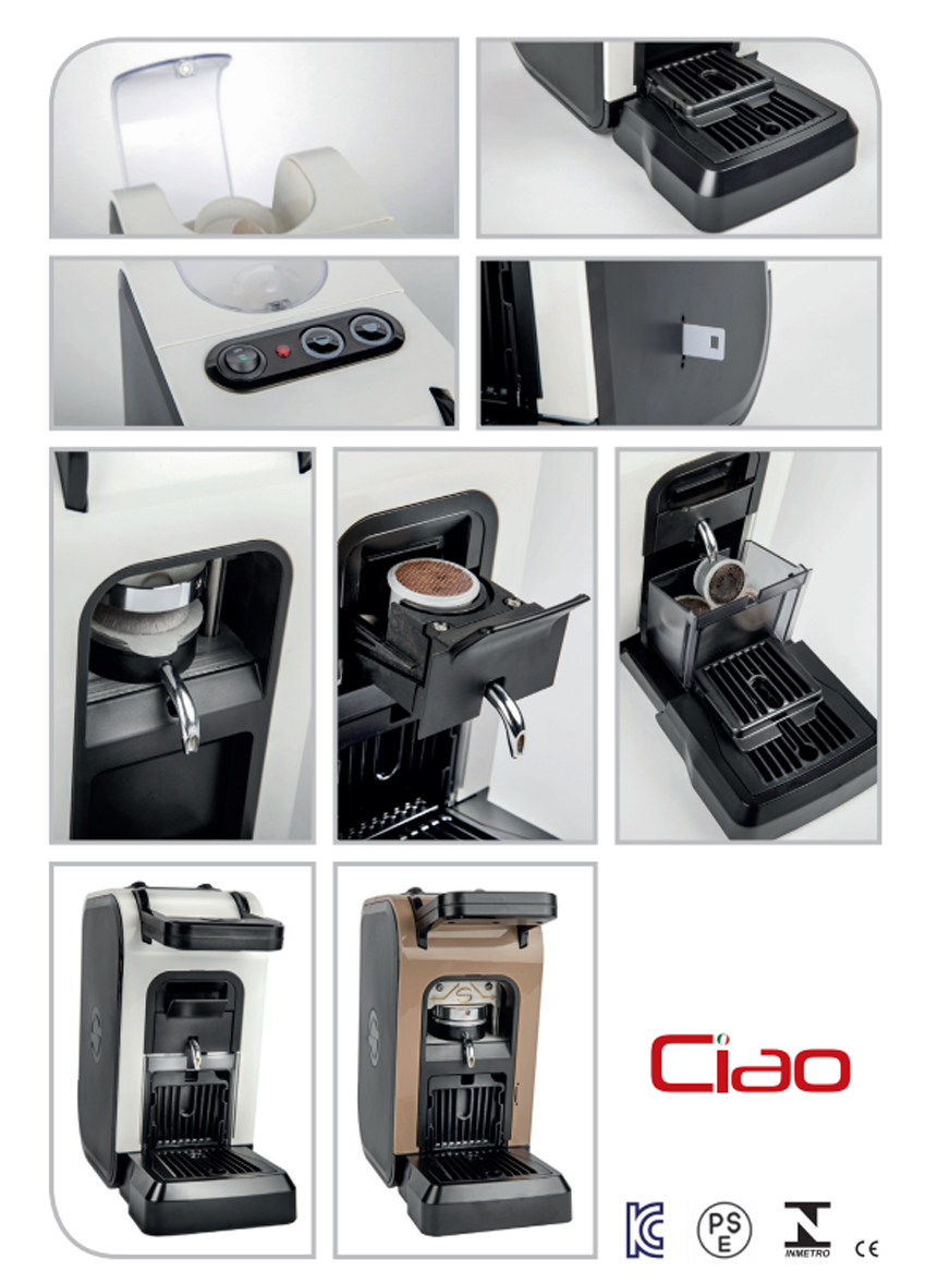 Innovative design, attractive and compact shapes make “Ciao” the ideal capsule espresso coffee machine for the office and home.